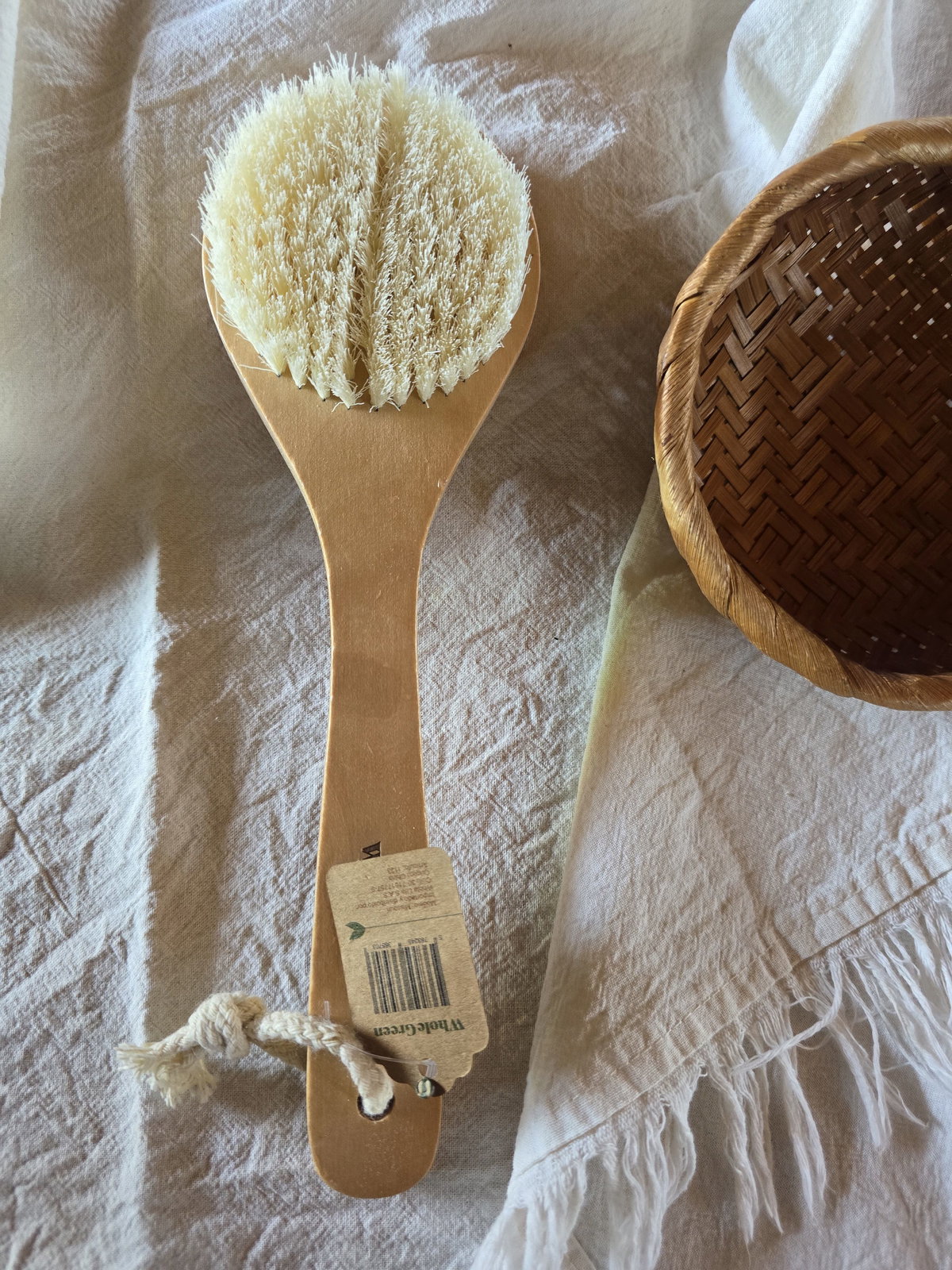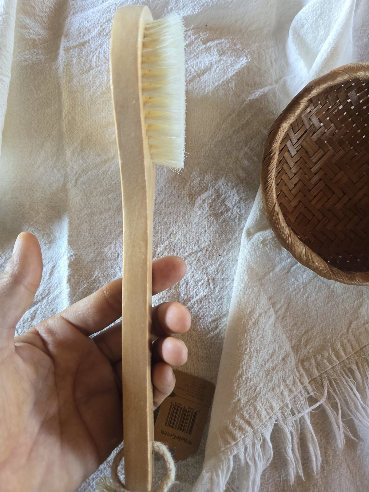 Cepillo corporal para cepillado en seco elaborado con bambĂş y